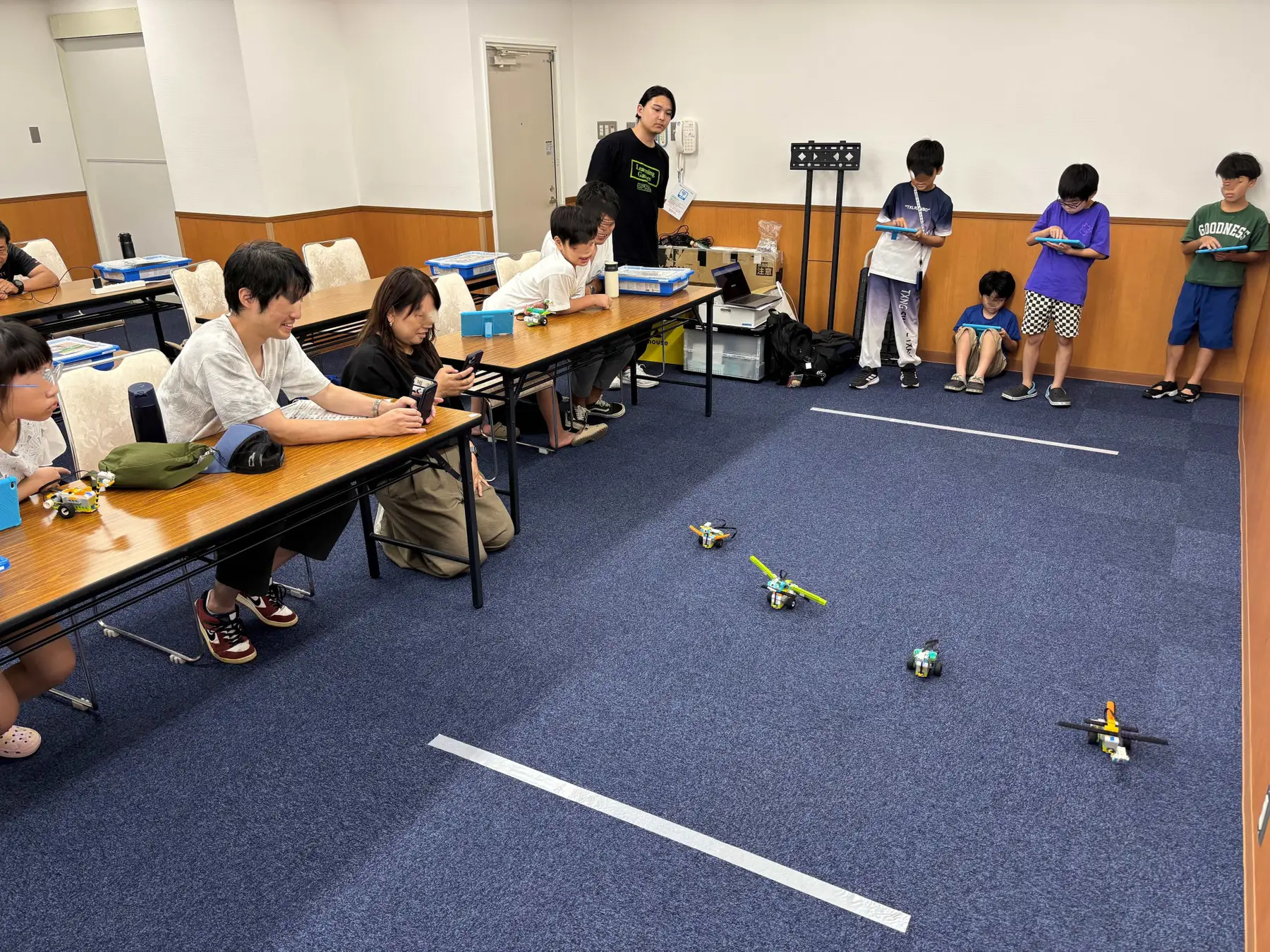 最後に参加者同士でレースを開催し、個性的なロボットを走らせて楽しみながらプログラミングを学びました。