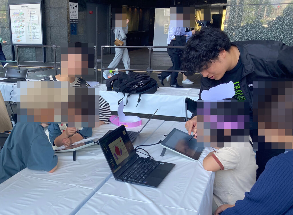 プロのイラストレーターが利用しているペンタブレット端末を使用し、絵に色を塗ったり、自由にイラストを描いたりするクリエイティブ体験を行いました。