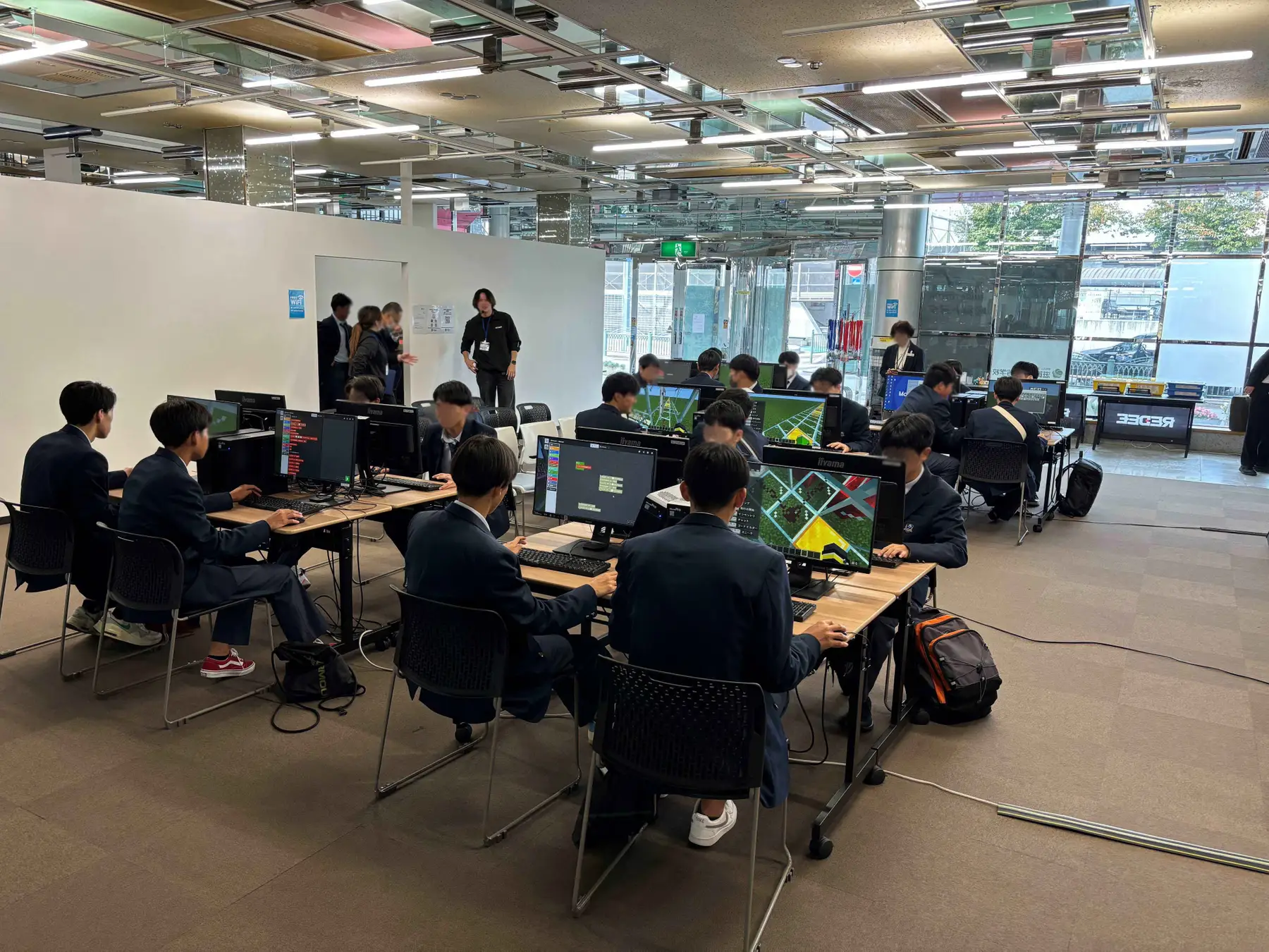 修学旅行の一環として、マインクラフトを使用したプログラミング体験やデジタルコンテンツ体験、eスポーツ体験などを体験していただきました。