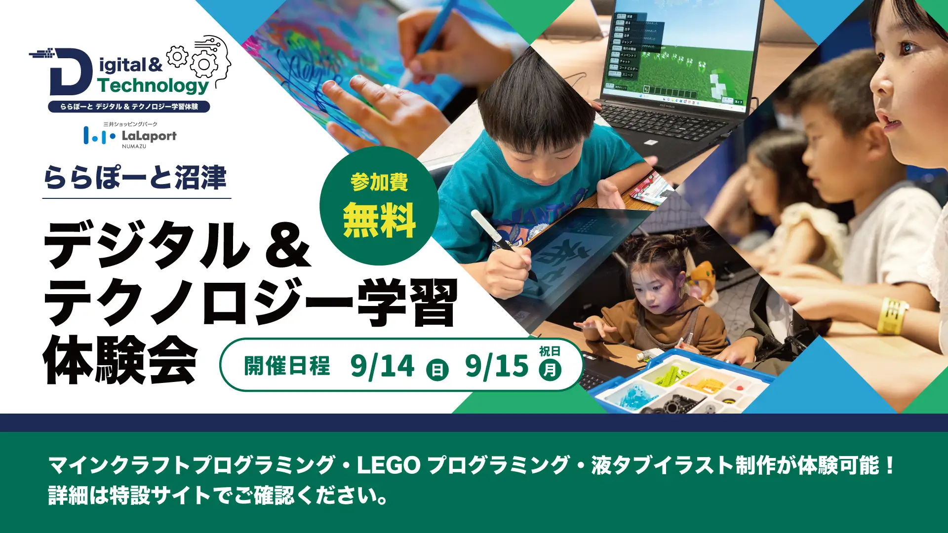 【9月14日(日)・15日(月/祝)】ららぽーと沼津デジタル&テクノロジー学習体験会開催