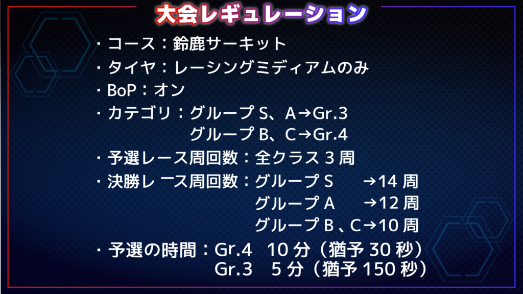 前回大会ではSクラスの周回数はAクラス同様12周でしたが、今大会より14周に増加。