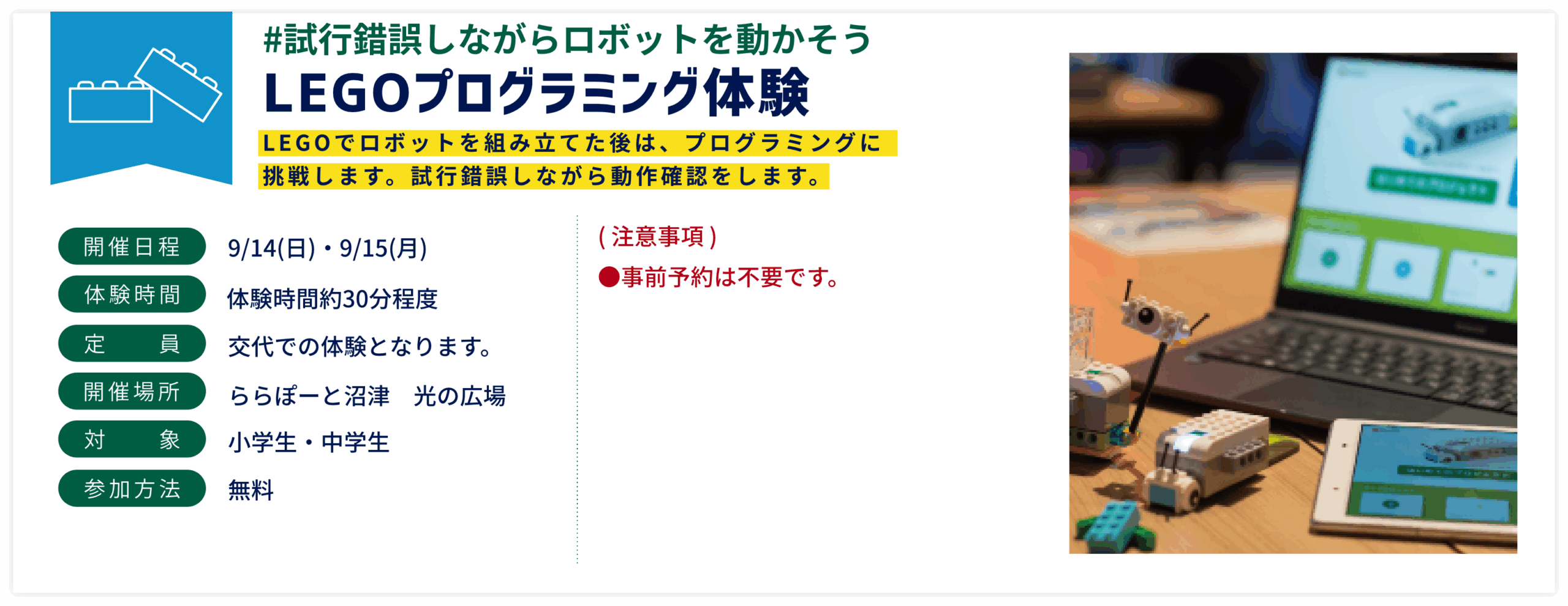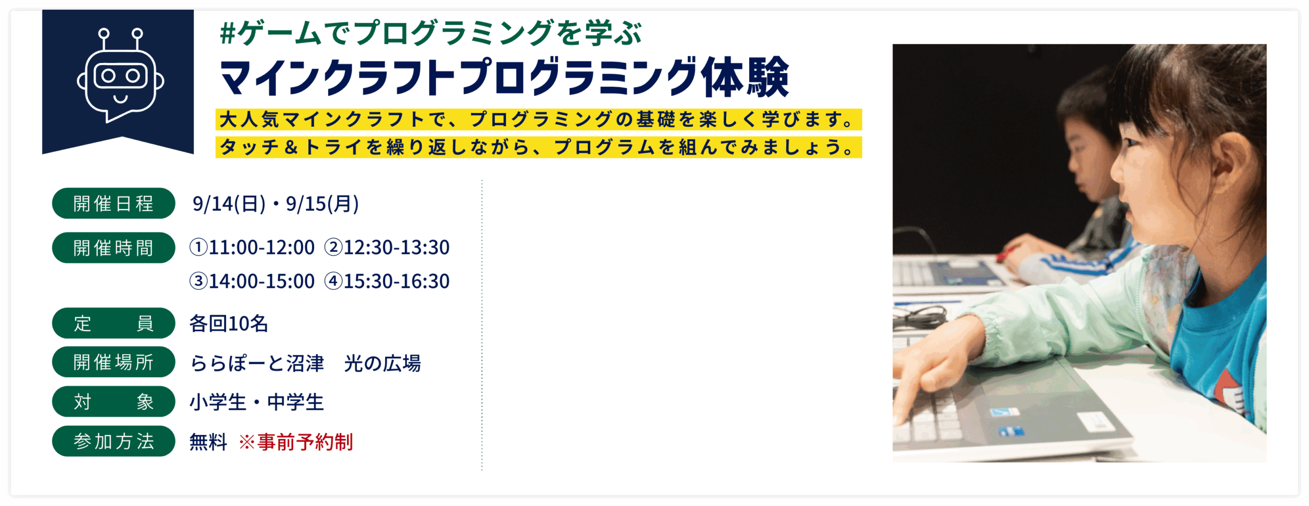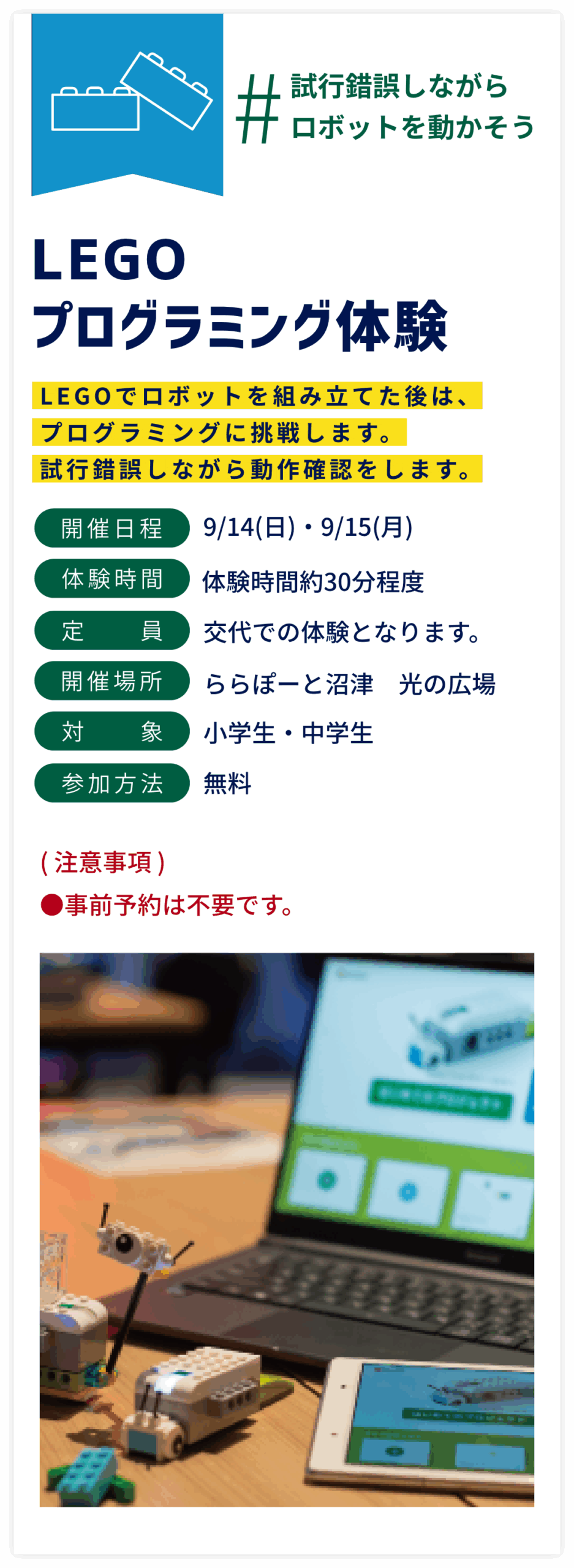 将来につながるきっかけをつかみ、みんなで楽しく学ぶ学習イベント!!デジタルを身近に感じることができる体験がたくさん!ぜひ皆様で参加してみてください!