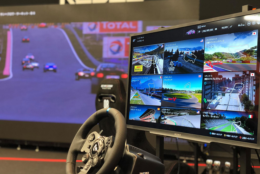 本格的な筐体で、大人気ソフト「グランツーリスモ7」を使用した体験・レース大会を開催します。試遊会は約10分程度とさせていただき、富士スピードウェイをコースとしてコンピューターと対戦しながらレース気分を楽しんでいただきます。